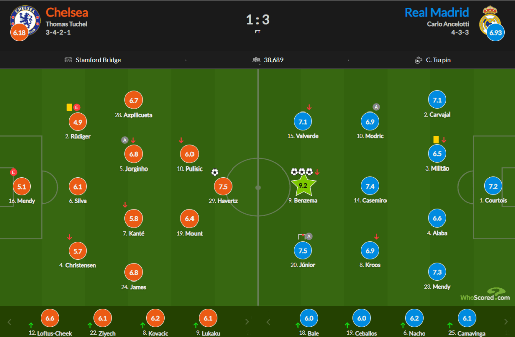 El segundo gol había llegado de un centro corto de Modric, acción que cada vez se ve más a menudo en los terrenos de juego. Los centros clásicos desde la línea de banda se van reduciendo a contragolpes mientras que, si la jugada es pausada, el lateral o el extremo suelen optar por ceder atrás al interior o mediocentro, que es el que busca el pase al área. La jugada tiene la lógica de maximizar la delicadeza en el pase de los mediocampistas y de provocar la salida de la línea defensiva con el pase atrás del extremo para el ataque al espacio del delantero, del extremo contrario o de quién pueda llegar de segunda línea. Así encontró Modric a Benzema y así geolocalizó Jorginho a Havertz, que arremetió contra Courtois para el 1-2. Recuperaba la ambición el Chelsea cuando Benzema (esta vez no) erró una contra cantada. Jorginho le ponía el gol en bandeja con una intercepción fallida y Jorginho se lo quitaba desestabilizándolo en el momento de la ejecución.